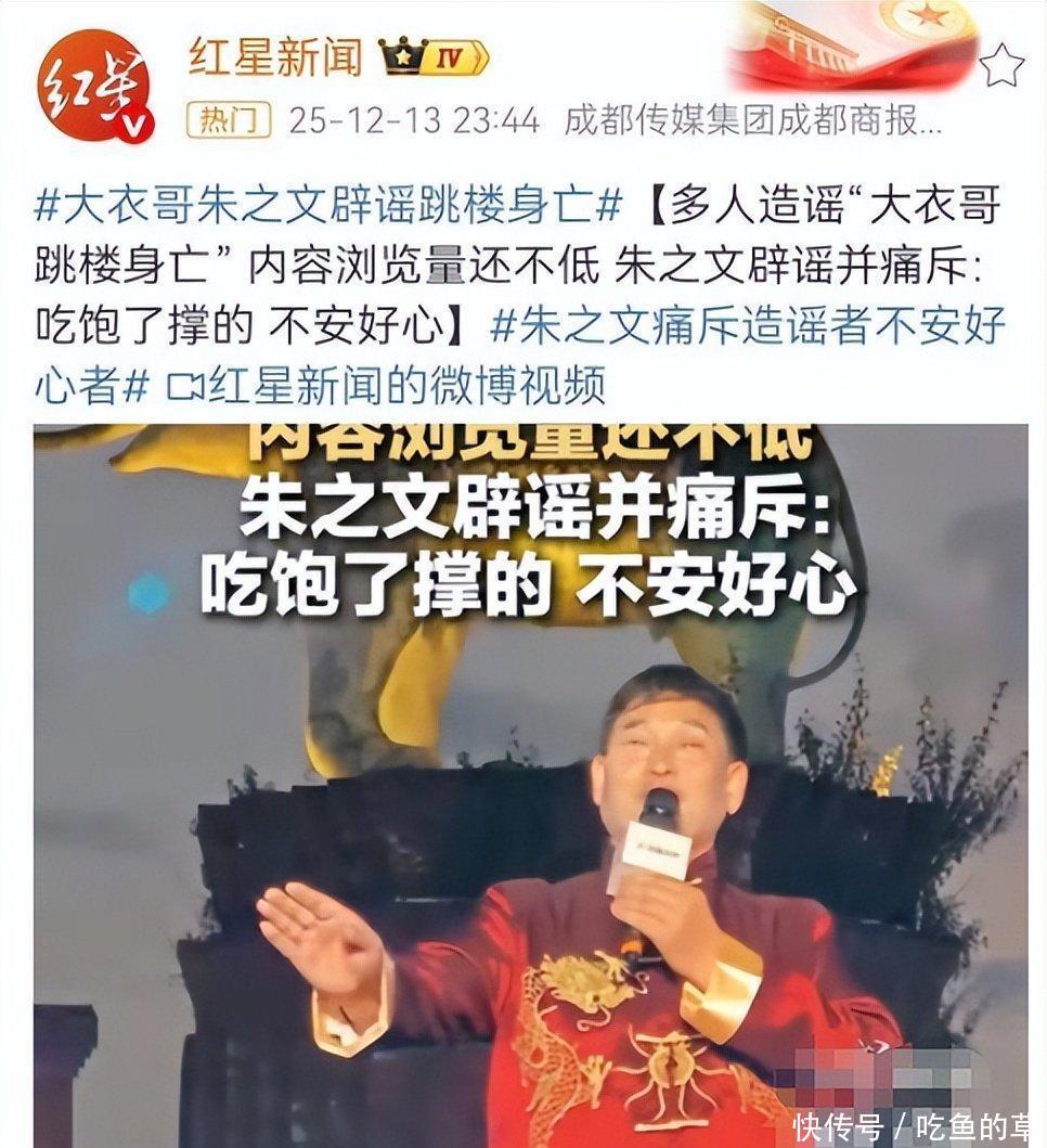 现在这消息一传开,别说是大衣哥了,就连咱们听了都直挠头,他火是火了,可好处没捞着多少,麻烦事儿倒是一桩接一桩。本以为大衣哥现在能过上安稳日子,不再被人打扰,可谁知他才从公众视线里消失不到俩月,就有人造谣说他跳楼身亡,还编出被人抬出来办丧事的离谱说法。12月13日那天,演员何晴不幸去世的消息刚传开,又有一条让人瞠目结舌的消息冒出来,说大衣哥也去世了,这真叫人一头雾水。这消息传得也太离谱了,说大衣哥被烦得不行,最后竟然想不开要去跳楼,这说法简直惊掉下巴。