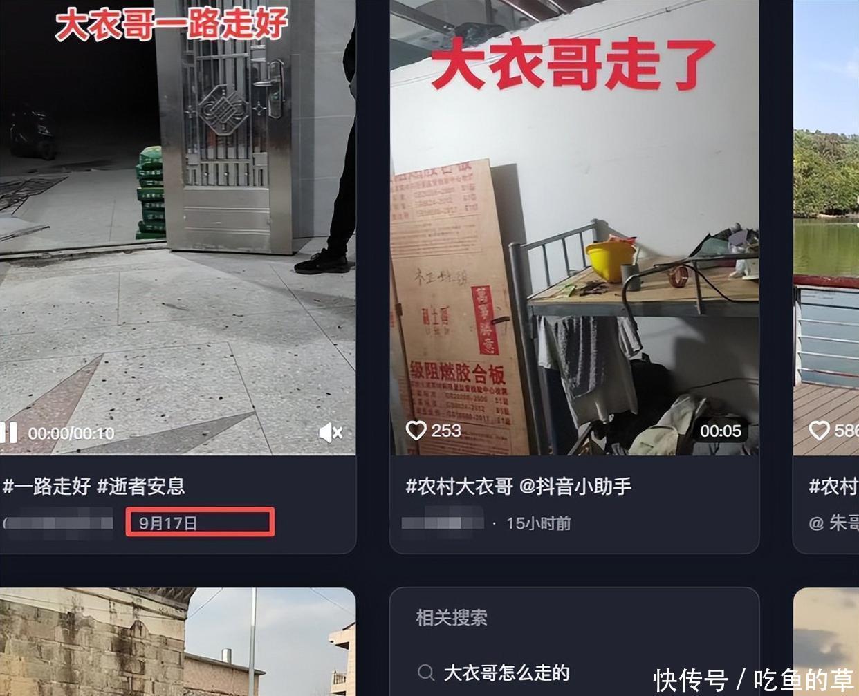 这事儿传得可快了,有些视频里居然放着大衣哥朱之文的黑白照片,还配上了办丧事时那种怀念的音乐,整个视频平台都快成网上祭奠的地方了。网上到处都是给大衣哥哭坟、祝他“一路走好”的,这要是大衣哥本人瞧见了,估计得纳闷儿:这又是啥新式网络暴力啊?
